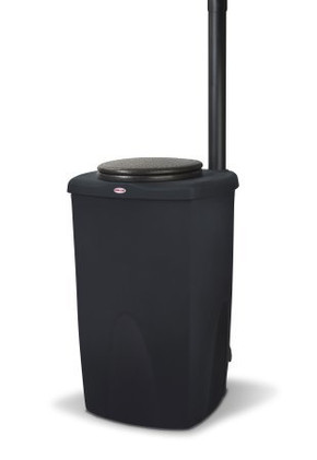 Pyörillä varustettu säiliö helpottaa tyhjennystä.
